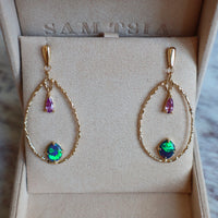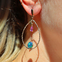 Black Opal + Pink Sapphire Teardrop Earrings