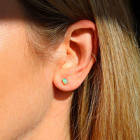 This .29ct neon green with orange crystal opal from Lightning Ridge opal is set in a classic 4 prong 14k yellow gold basket with butterfly backing.