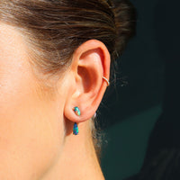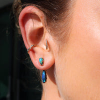 These hand carved ear jackets feature 4 flashy blue -green Australian black opals (2.42ctw) set in 14k yellow gold ear jackets.