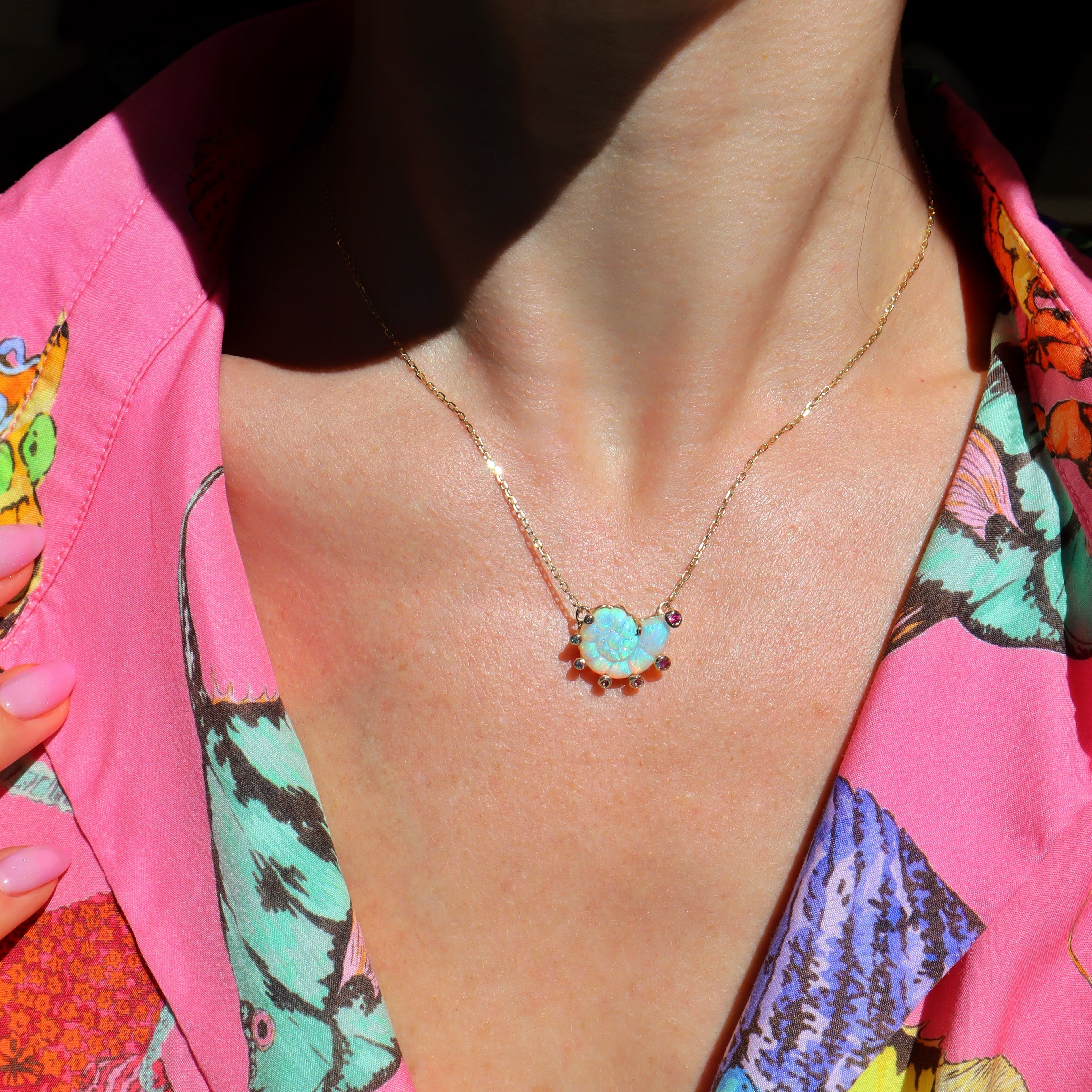 Ocean Fantasea Aqua Nautilus Opal Necklace
