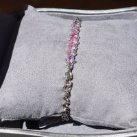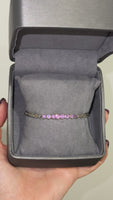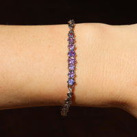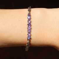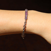 This eye catching bracelet features 2.10ctw of Madagascan purple precision cut hexagonal sapphires set in a hand carved white gold custom setting.