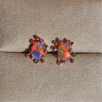 These vibrant rainbow colored 1.31st w Australian opals are set in a ‘Fantasea’ style hand carved coral setting with sapphires, emeralds, and diamonds.